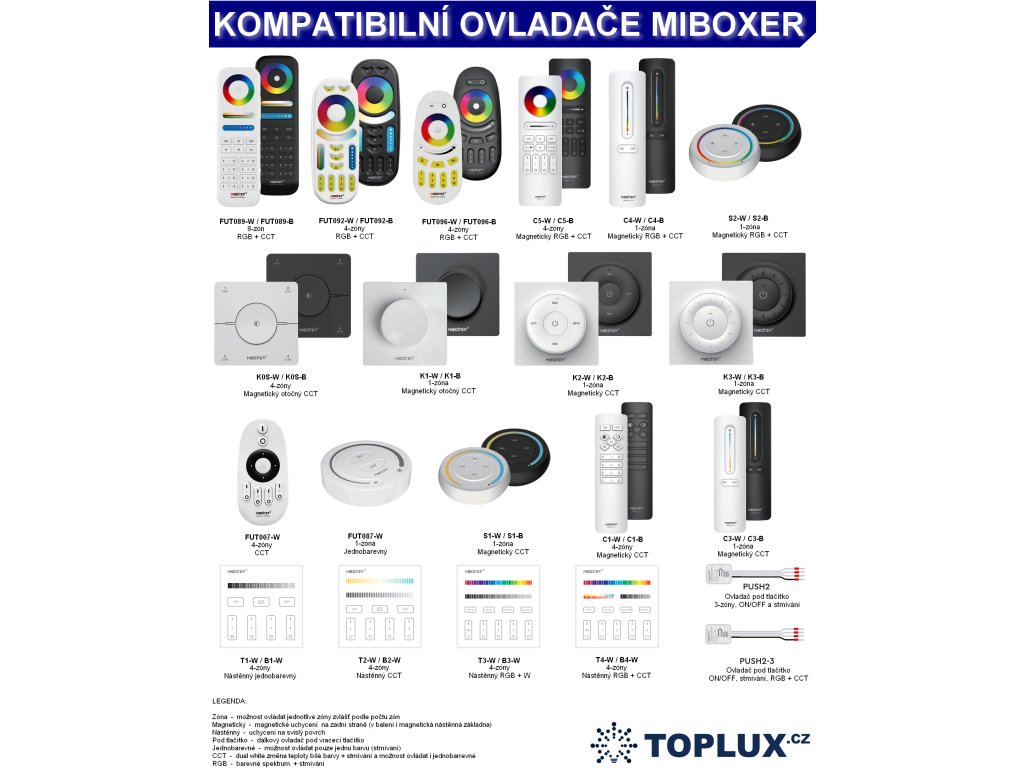 | Barva světla: | 3000K Teplá žlutá, 4000K Neutrální bílo-žlutá, 6000K Studená bílá, CCT - regulovatelná 3000-6000K, RGB - barevné, RGB+CCT všechny barvy |