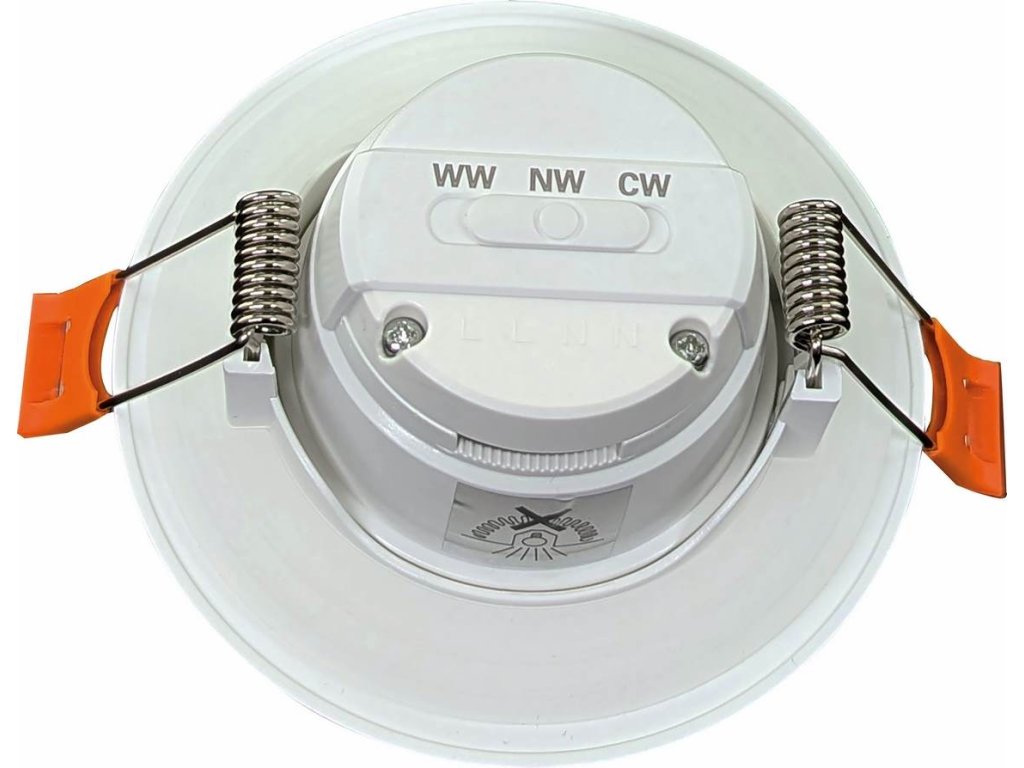 Přepínač umístěný na zabudované části svítidla umožňuje nastavení teploty světla.