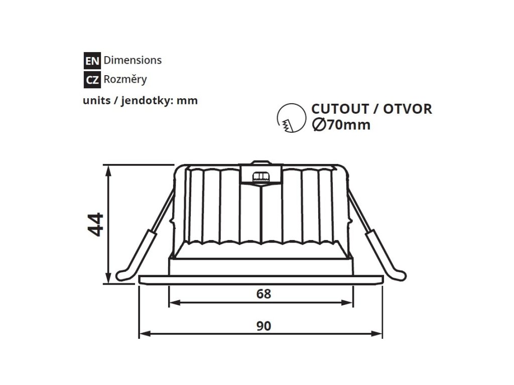 Moderní a univerzální LED podhledové CCT svítidlo SHIMO 5W v černobílé barvě, krytím IP54 a UGR<9 je ideální volbou pro osvětlení interiérů i chráněných venkovních prostor. Díky stupni krytí IP54 se svítidlo hodí pro instalaci do koupelen a ve venkovních podhledech, například na terasách nebo v přístřešcích. LED světlo díky UGR < 9 zajišťuje minimální oslnění, ideální pro kanceláře, domácí pracovny nebo přesné práce. Díky rovnoměrnému světlu bez odlesků zvyšují pohodlí, snižují únavu očí a podporují produktivitu. Montáž je snadná a rychlá, jelikož se svítidlo se uchycuje pomocí pružin, které jsou součástí balení. Doporučený montážní otvor ve stropě je 70 mm. Na svítidle se nachází přepínač pro nastavení teploty světla (CCT). Podle potřeby si můžete přímo při instalaci zvolit jednu ze tří barev světla: 3000 K 4000 K 6000 K Tato flexibilita vám umožní přizpůsobit atmosféru prostoru podle konkrétní situace a osobních preferencí. Součástí balení: Světlo Pružiny Specifikace LED svítidla Barva svítidla Černá, bílá Materiál svítidla Plast Vstupní napětí 220-240V AC Příkon 5W Barva světla CCT (3 varianty bílé barvy) Teplota světla 3000-6000K Světelný tok 440lm CRI >90 Úhel svitu 24° Krytí IP54 Životnost 25000h Stmívatelnost Ne Rozměry světla 44*90mm (výška*průměr) Záruka 2 rokyDoplňkové parametry