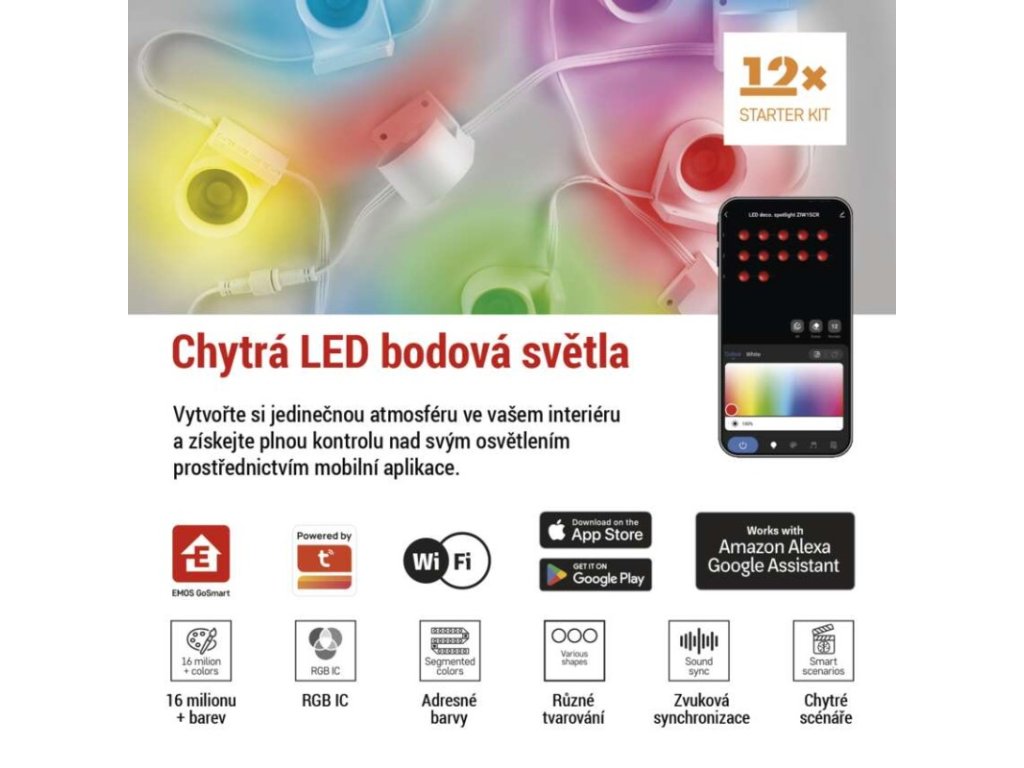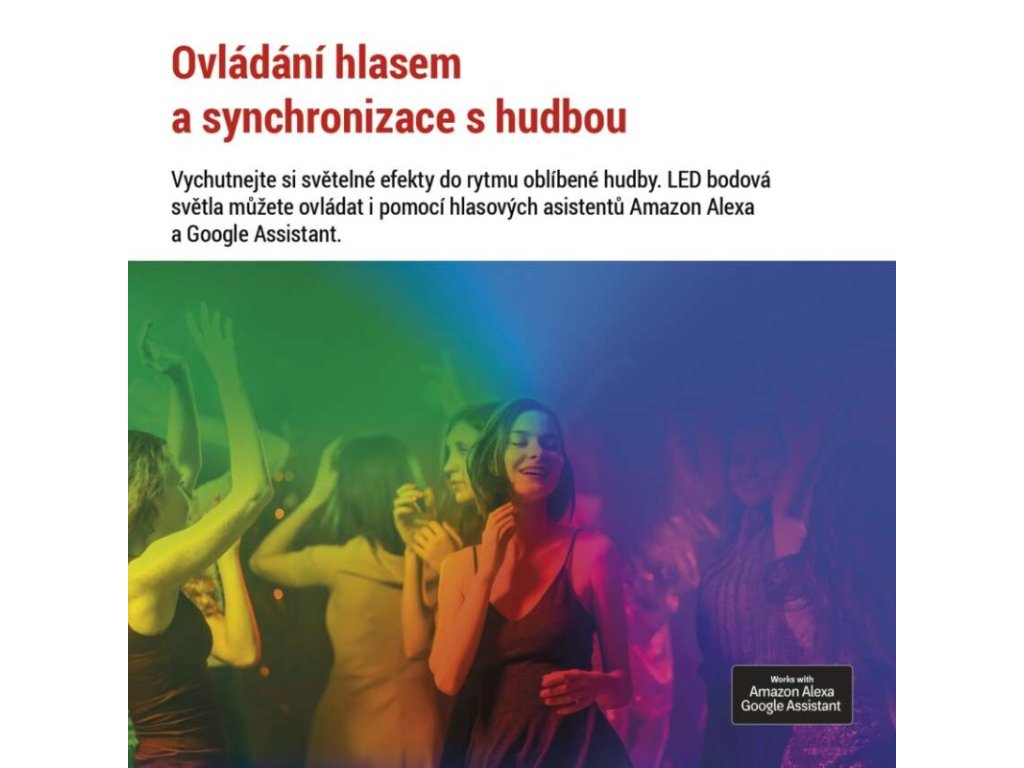 Bodové osvětlení můžete ovládat nejen pomocí mobilní aplikace, ale také hlasovými asistenty Amazon Alexa a Google Assistant nebo kontrolerem na 2m přívodním kabelu.