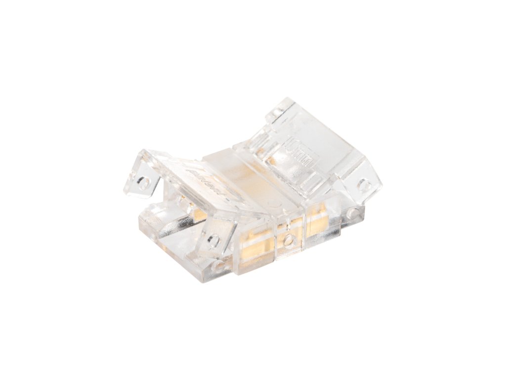 CLICK konektor CON P 10 CCT/D je přímá bezkabelová spojka určená pro spojení dvou COB LED pásků CCT o šířce 10 mm. Slouží k vytvoření souvislé světelné linie bez přerušení, a to bez nutnosti pájení, pouze pomocí integrované CLICK svorky.