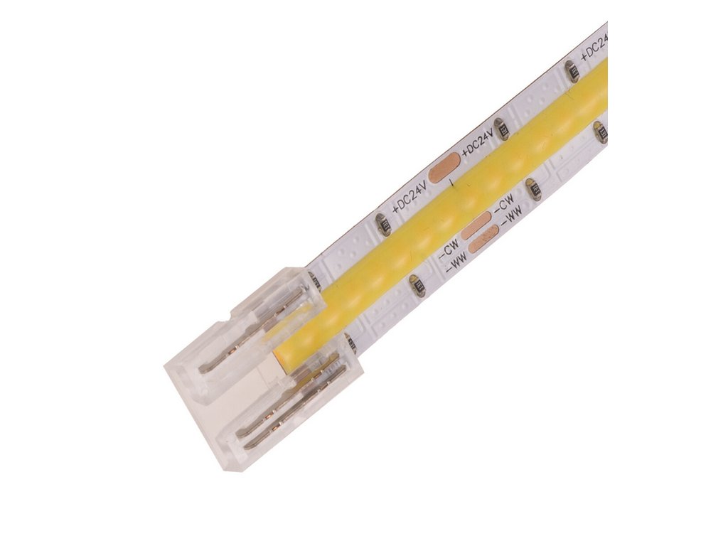 Konektor je navržen pro LED pásky Kanlux LCOB CCT a LCOB DIGITAL a je plně kompatibilní s 12V i 24V systémy. Díky průhlednému provedení svorky nevzniká v místě spoje žádný stín ani viditelný přechod, což je klíčové zejména u COB LED pásků s vysokou hustotou světla.