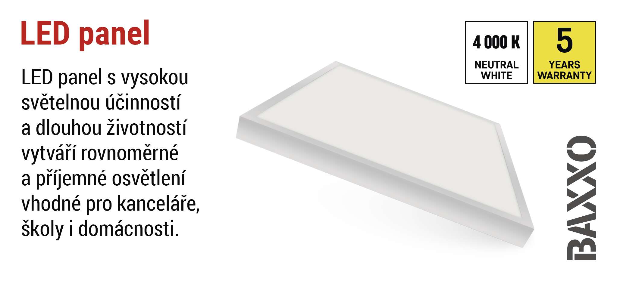 LED panely této řady dosahují světelné účinnosti až 120 lm/W, což znamená, že poskytují výrazné množství světla při minimální spotřebě energie. Díky této efektivitě jsou ideální volbou pro prostory, kde je důležité kvalitní a zároveň úsporné osvětlení. Vysoká účinnost zároveň přispívá k nižším provozním nákladům a šetrnějšímu přístupu k životnímu prostředí. Kombinace úsporného provozu, moderní technologie a spolehlivého výkonu dělá z řady BAXXO osvědčené řešení pro každodenní použití.