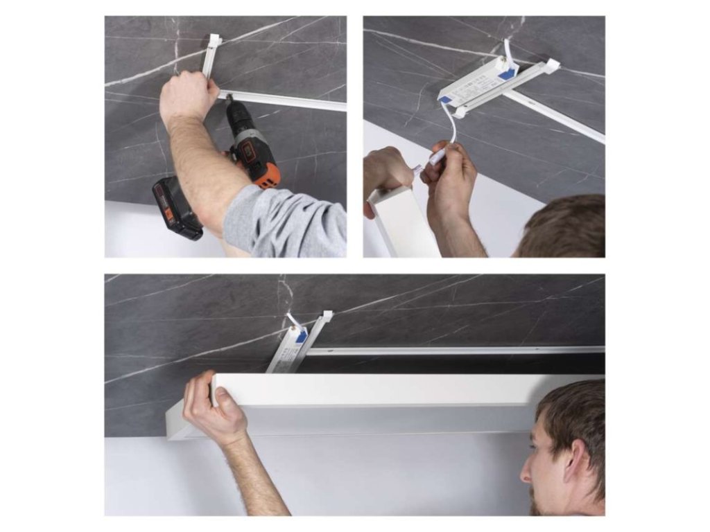 Celá konstrukce je navržena tak, aby působila čistě a esteticky i po montáži. Není potřeba žádné další příslušenství, což zjednodušuje práci a šetří čas. Výsledkem je moderní a ucelený vzhled svítidla v každém interiéru.