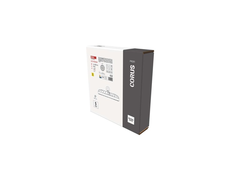 Zajistěte si optimální osvětlení pro vaše prostory s highbay svítidlem CORUS. Kvalitní LED čipy dodávají svítidlu vysokou světelnou účinnost 120 lm/W a dlouhou životnost. Vynikající výkon a kvalita světla vám pomohou ozářit velké průmyslové prostory jako jsou sklady, výrobní haly apod.