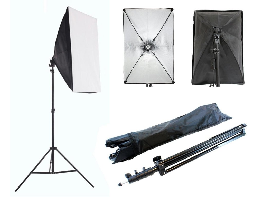 Studiový softbox 48x66cm a stativ na stream, focení, video - světlo pro žárovku E27 foto stojan Photo Set