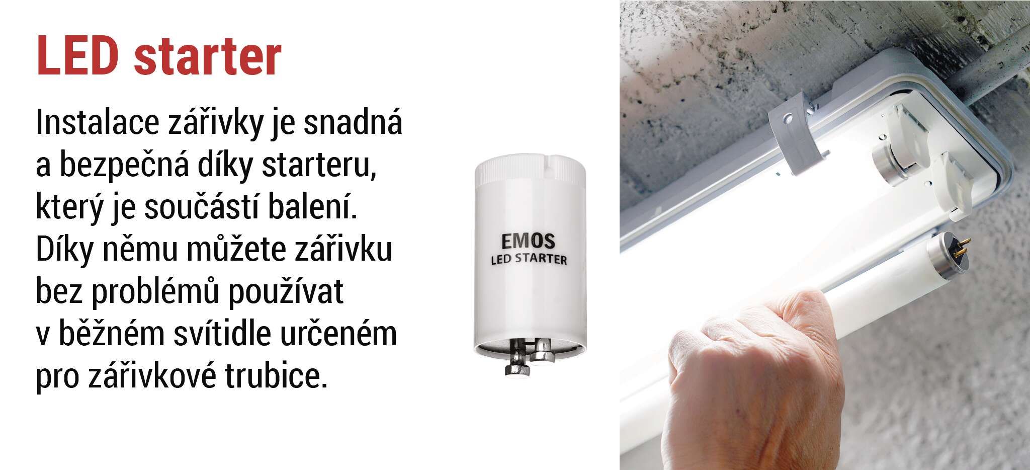 S LED zářivkami EMOS získáte vše, co potřebujete pro okamžitou instalaci. LED startér je již součástí balení, takže výměna staré zářivky za novou je rychlá, bezpečná a bez nutnosti dalších úprav. Stačí jednoduše vyměnit původní trubici i startér a můžete si užívat moderní, úsporné a spolehlivé osvětlení během několika minut.