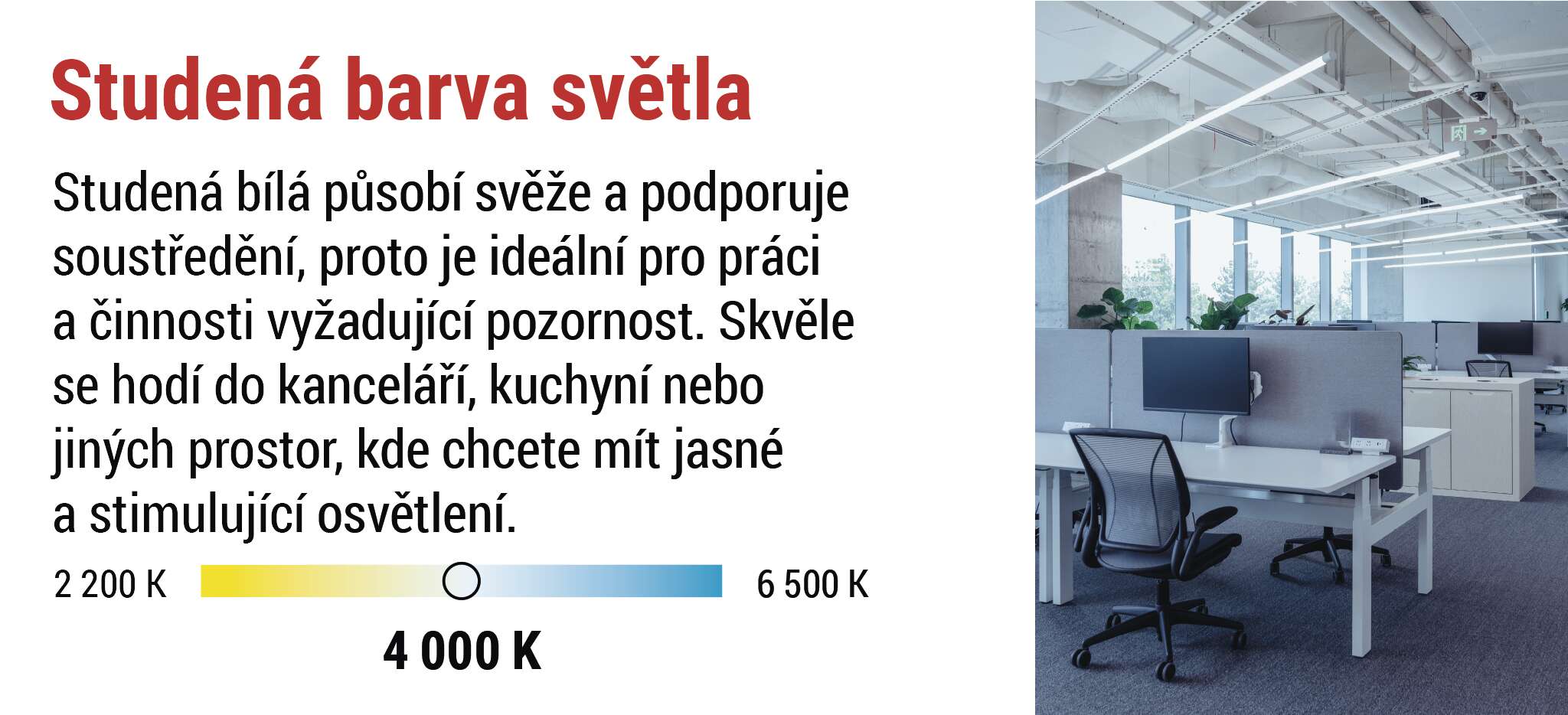 Zářivky EMOS s vysokou světelnou účinností přinášejí maximum světla při minimální spotřebě energie. Díky této účinnosti poskytují silný a rovnoměrný světelný tok, přestože spotřebovávají výrazně méně elektřiny než běžné zdroje. V praxi to znamená úsporný provoz, nižší náklady na energii a šetrnost k životnímu prostředí – bez kompromisů v kvalitě nebo intenzitě osvětlení.