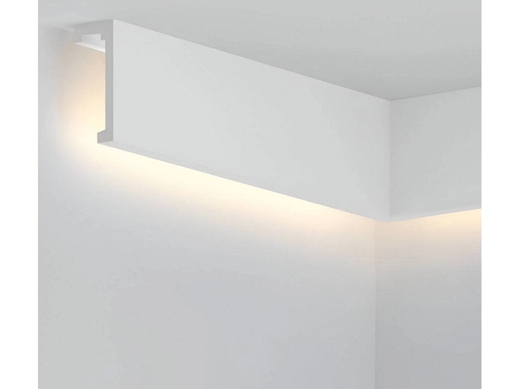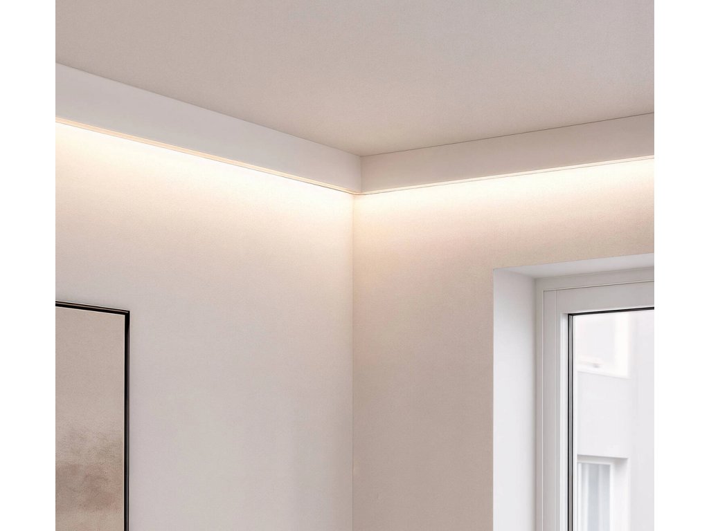Dekorativní obvodová rohová lišta HOOK bílá, náhrada za sádrokartonové kapsy (falešná NIKA) - nepřímé osvětlení.