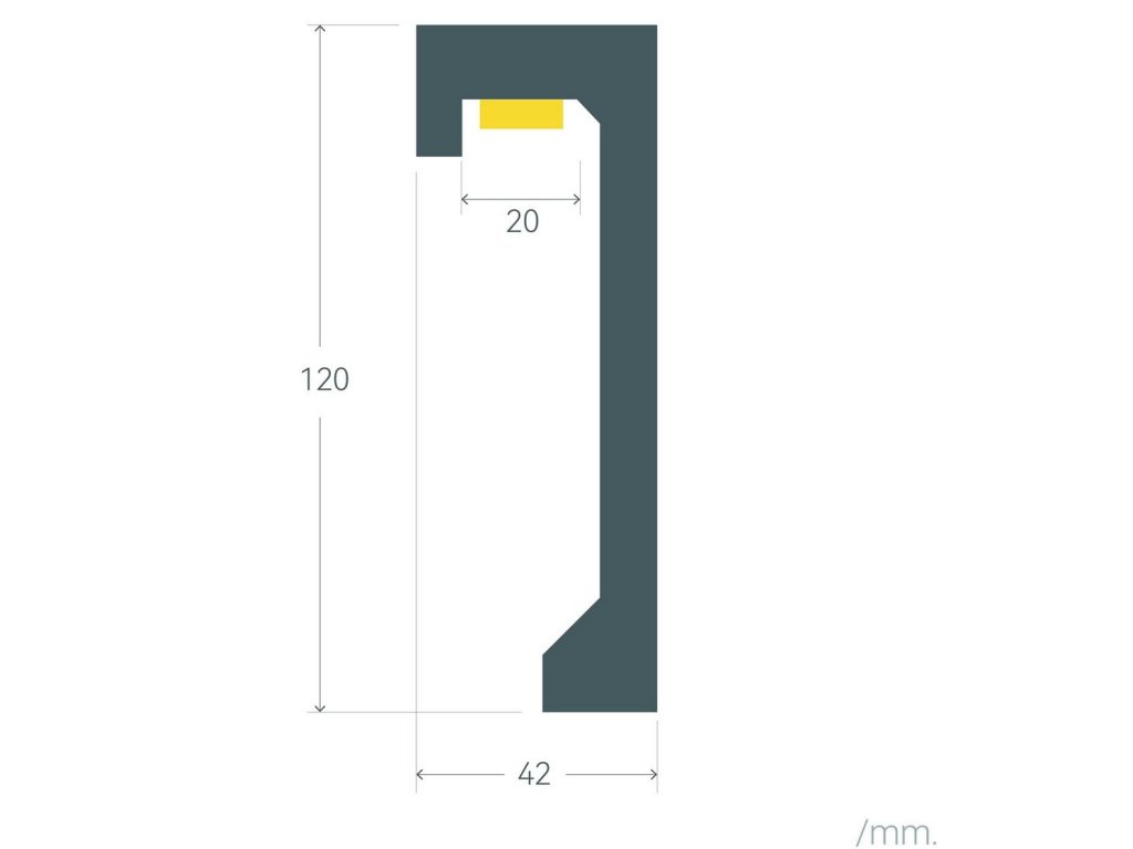 Dekorativní lišta HOOK je moderní profil určený pro instalaci LED pásků, ideální pro vytvoření nepřímého osvětlení v interiéru. Díky svému designu umožňuje lišta nasměrovat světlo směrem ke stropu, čímž vytváří jemné rozptýlené světlo bez oslňování.