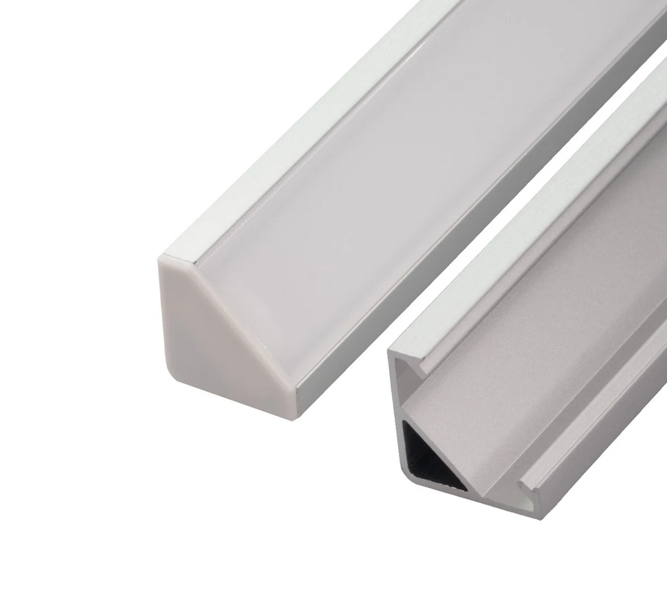 Verze rohového stříbrného profilu, kde kryt je téměř přes celý ALU profil, takže po nainstalování je viditelný pouze opálový mléčný, nebo čirý průhledný kryt difuzor, po zapnutí instalovaného pásku je taktéž viditelná jen světelná část, bez bočních hran.