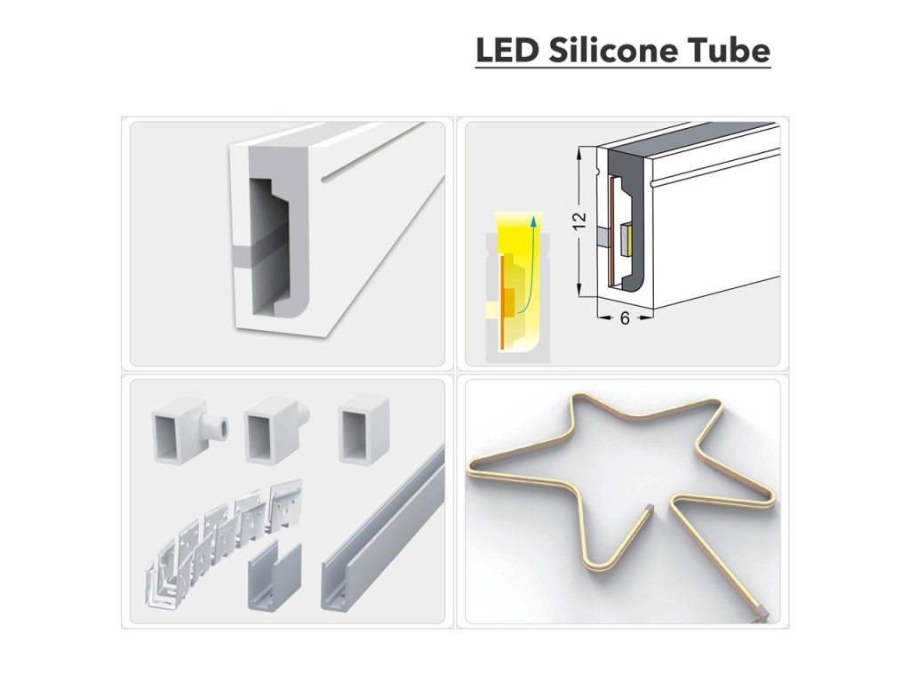 NEON 6x12mm Silikonový bílý ohebný profil pro LED pásek, IP67 SIDE view (metráž)