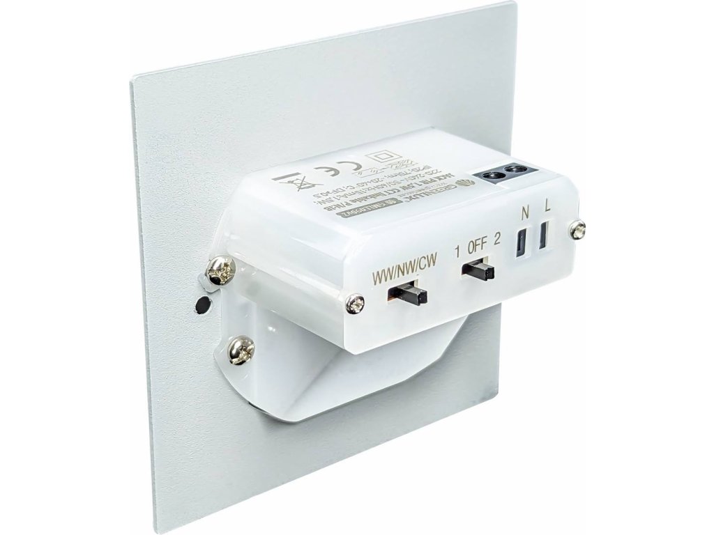 Přepínače umístěné na zabudované části svítidla umožňují nastavení teploty světla a možnost vytvořit společně spínanou skupinu svítidel.
