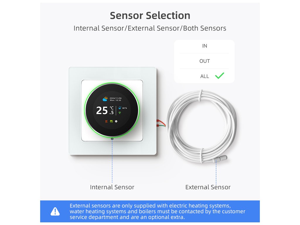 📦 Obsah balení: termostat, externí teplotní čidlo (3 m), uživatelský manuál
