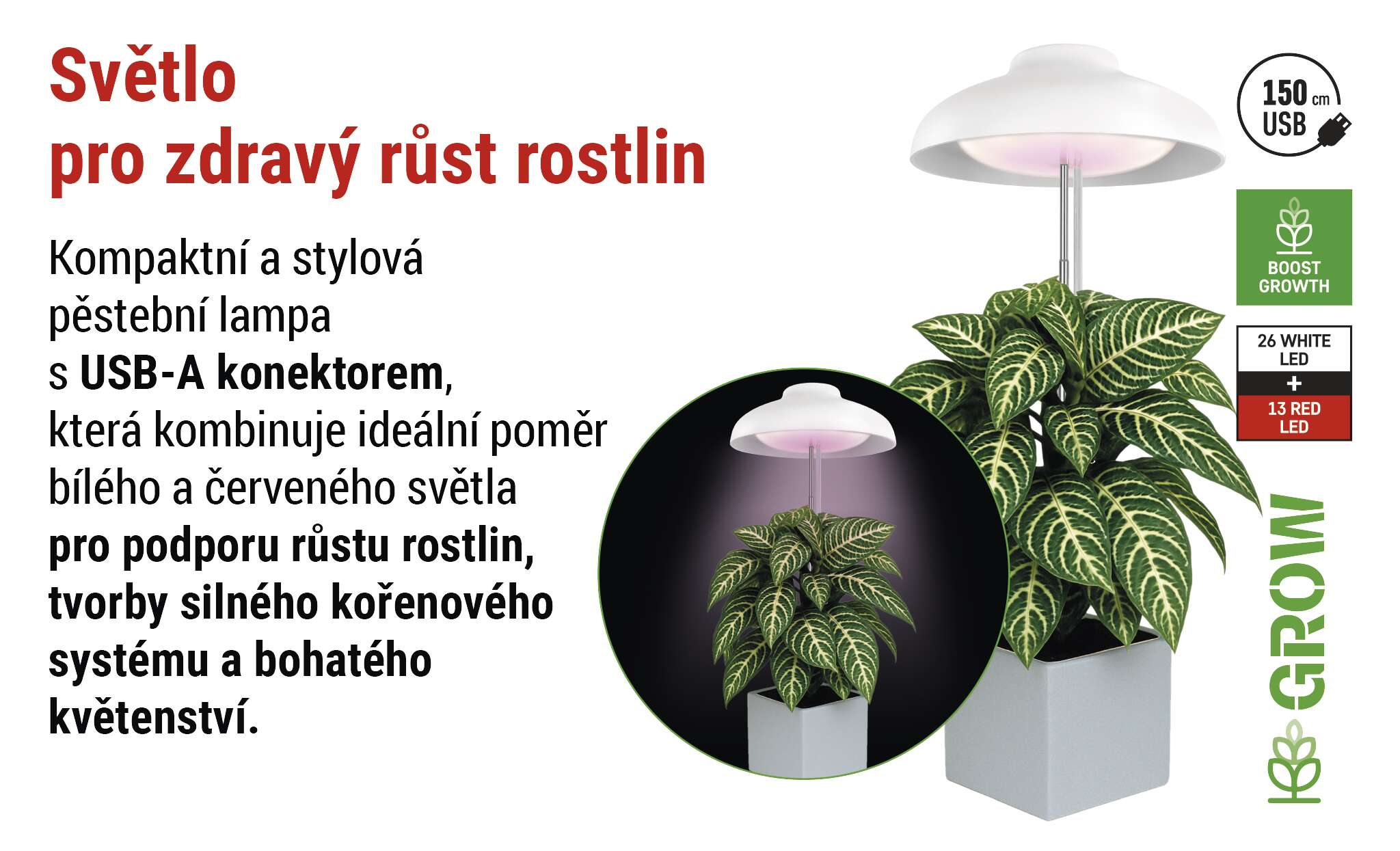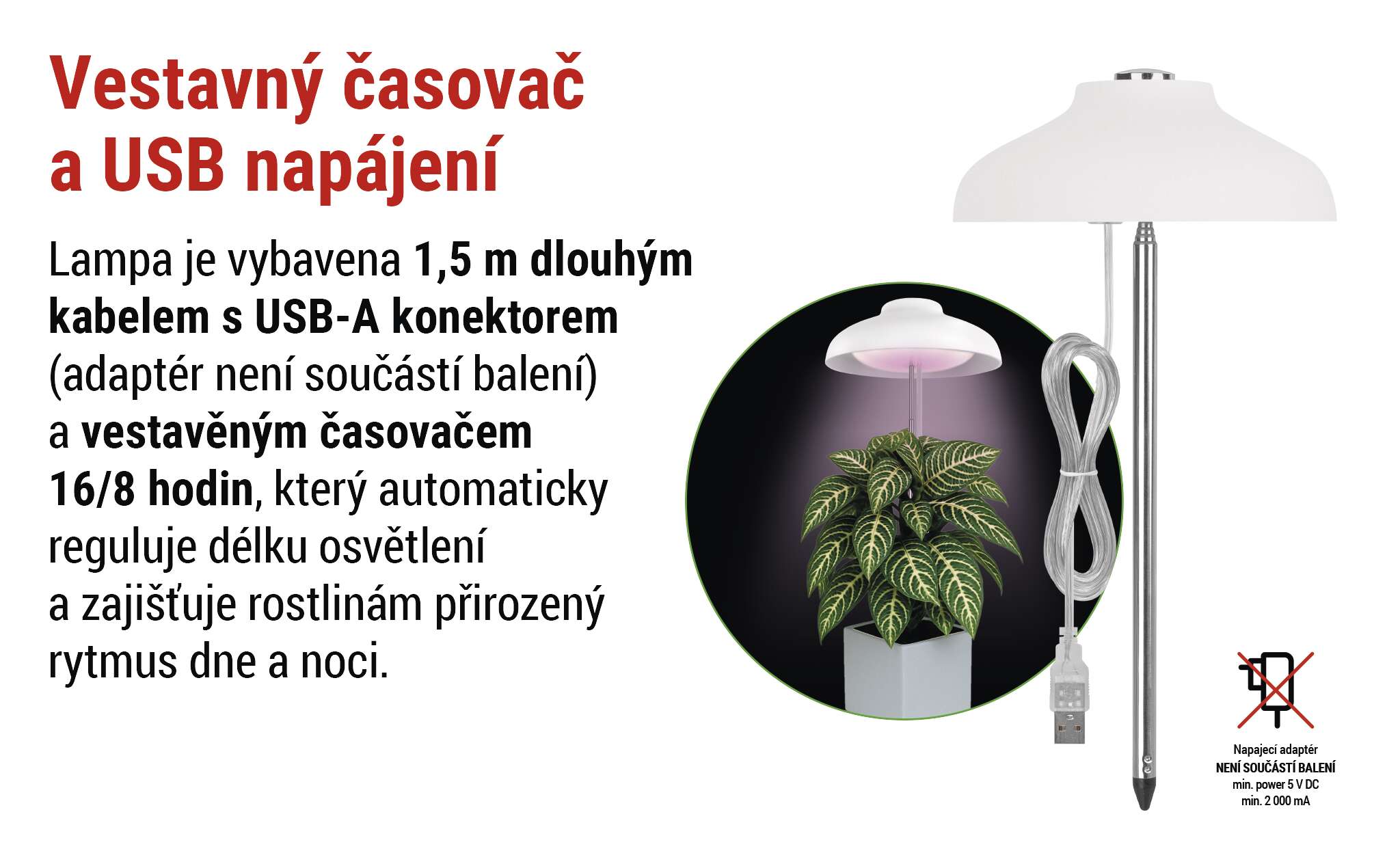 LED GROW pěstební lampa 5 W, časovač, bílá