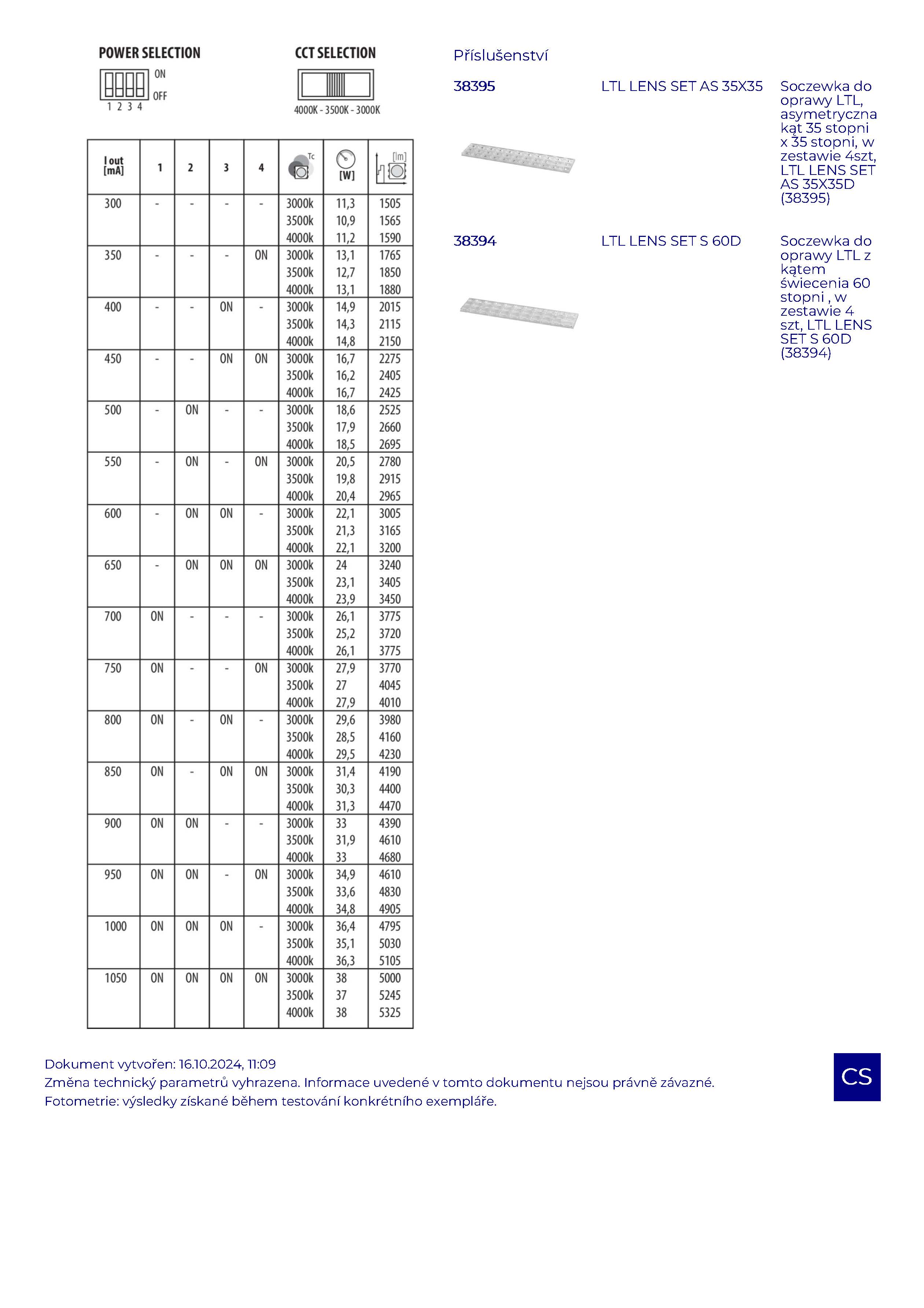 | Světelný tok [lm]: | max 5000 / 5245 / 5325 |